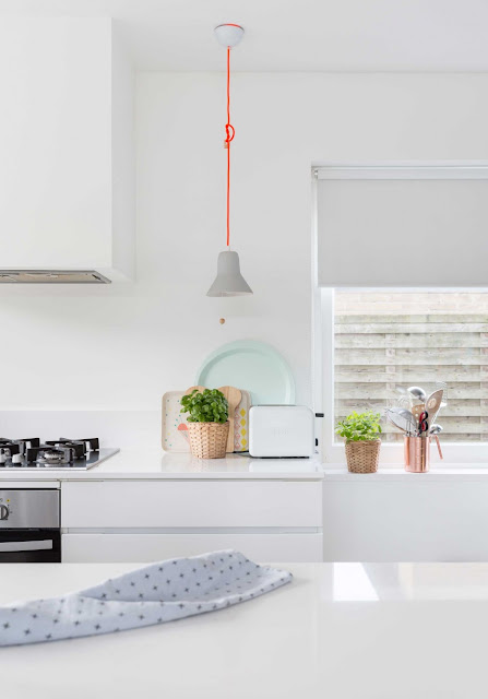 Located in the town of Alphen aan den Rijn in the Netherlands, the airy semi-detached villa of Anita and her family is designed to be a calm retreat from the stresses of the day. I love the little vignettes everywhere — so pretty. More here on vtwonen.