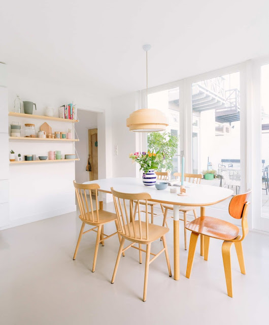 This pretty Dutch family home has a splendid lightness of touch, with delicate pastels and blond wood used to great effect against the bright white background. So livable and welcoming. More here on vt wonen.